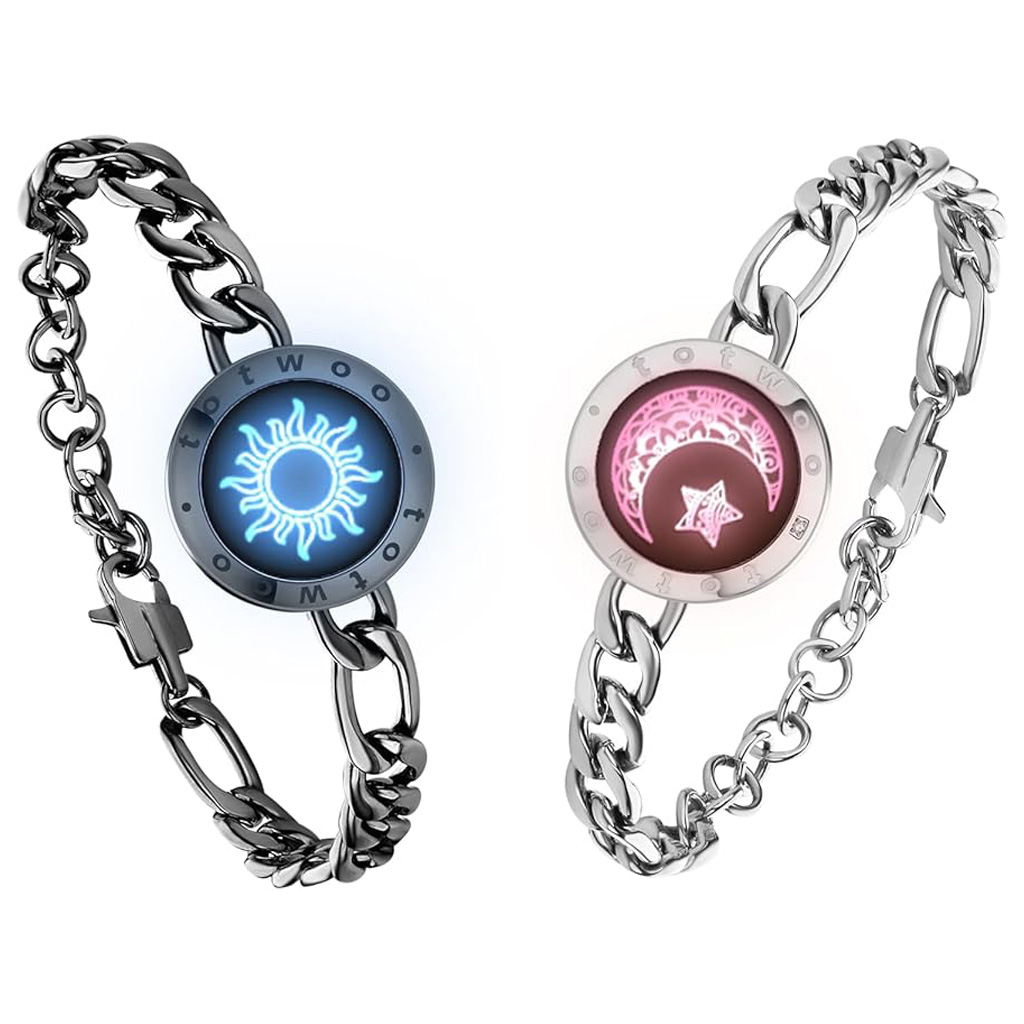 Stay connected no matter the distance with the Totwoo Long Distance Touch Bracelets. Simply tap your bracelet, and feel your partner’s response through vibration and light, showing them you’re thinking of them. Perfect for couples, families, and close friends. Crafted with sun and moon designs, these bracelets symbolize eternal love and are engraved with Jane Austen’s quote, “My heart is, and will always be yours.” With advanced technology, custom lights, and vibrations, these bracelets help you stay connected through every moment.